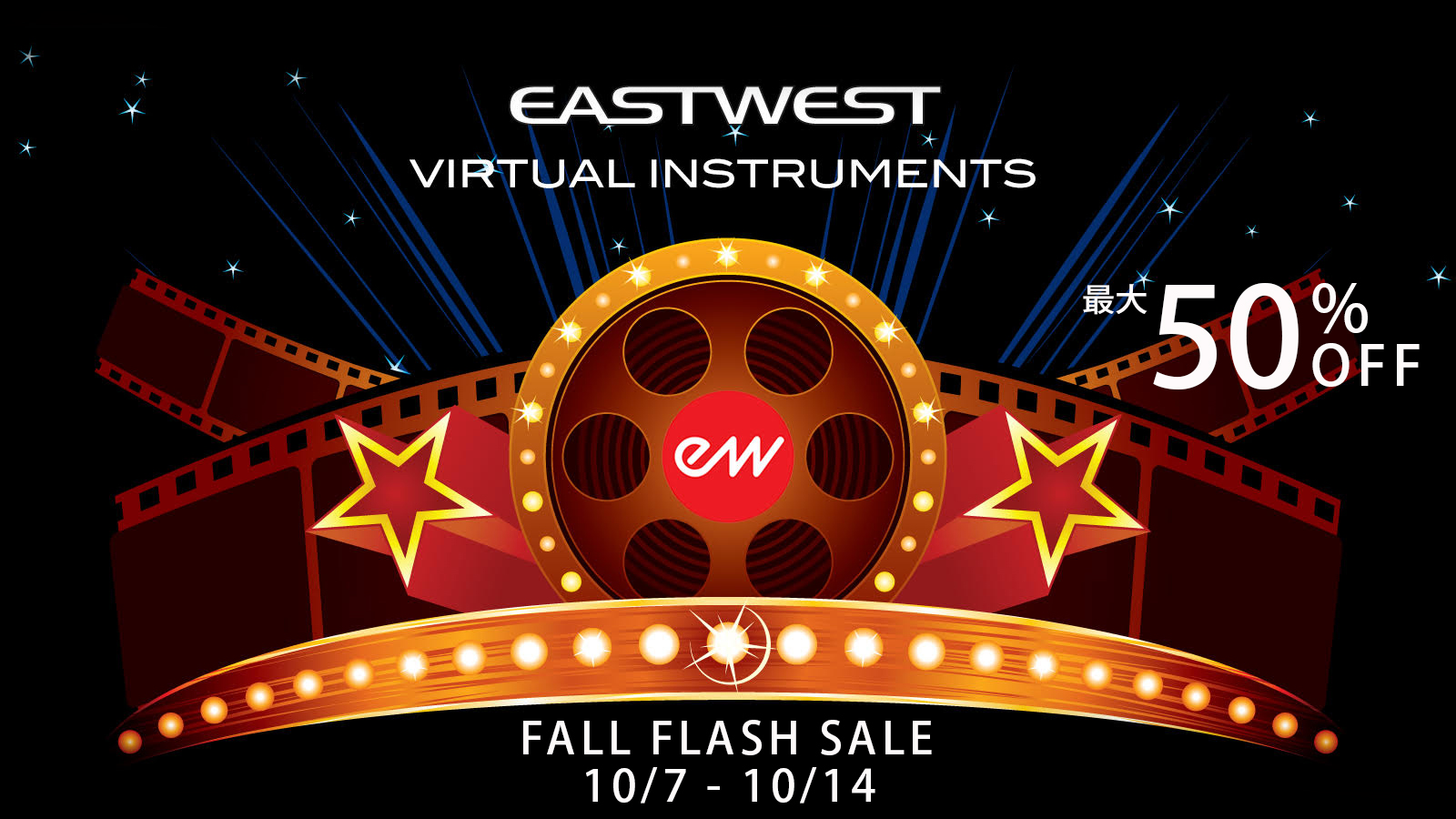 EastWest Fall Flash セールを実施します。ハイリゾリューションストアでは、EastWestダウンロード製品を最大50%オフにてご提供いたします。