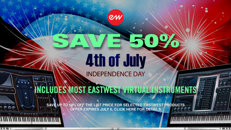 ハイリゾリューションストアでは、アメリカ独立記念日(Independence Day)セールとして、EastWestの主要ダウンロード製品を最大50%オフにてご提供いたします。