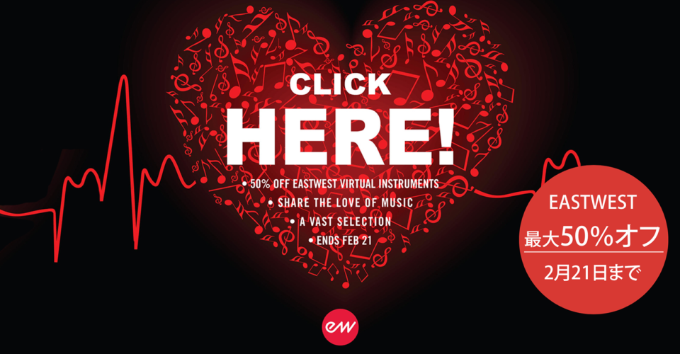 EASTWESTは、バレンタイン・スペシャルセールとして対象ダウンロード製品を最大50%オフにてご提供いたします。 2020年2月12日(水)〜 2020年2月21日(金)まで * ComposerClou … 続きを読む 【終了しました】EASTWEST バレンタイン・スペシャルセール 最大50%オフ、2020年2月21日まで