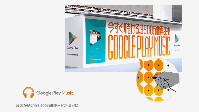 2015年に採用された Google Play Music 3,500万曲ビルボードでは、約2週間の会期、12:00 〜 21:00の間、再生が止まるなどのトラブルもなく運用されました。