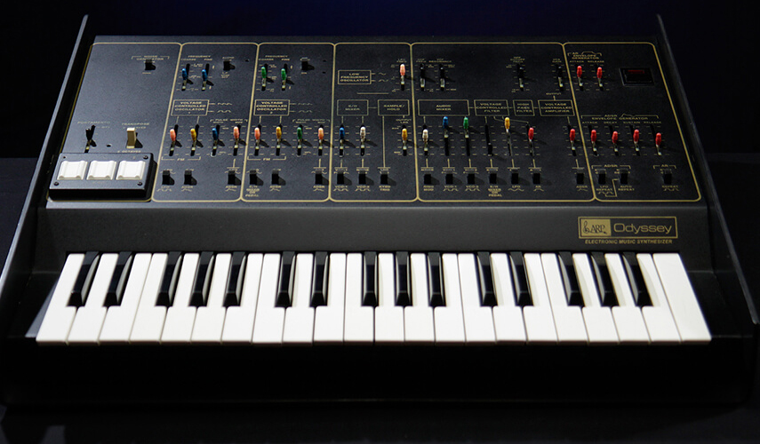PPC(圧力感知式コントローラー)を備えたMkIIIオデッセイを示し、”チック・コリア”以外はこの楽器を使用していないと宣言する英国の音楽店の広告。749ポンドの割引された”直輸入”価格は、今日の2,000ポンドに相当します。ODYSSEYのモデルにもよりますが、幸運にも良いものを見つけることができた場合は、1,200ポンドまで支払う準備をしてください。