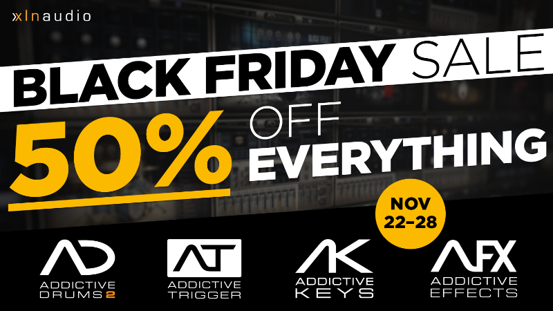 ドラム音源として確固たる実績を誇る、Addictive Drumsシリーズのほか、軽快動作と品質の高いサウンドが特徴のAddictive Keysシリーズに加えてドラムリプレイサープラグインとしての機能をもつ、Addictive Triggerや、プラグインエフェクトのAddictive FXシリーズ:DS-10、RC-20 Retro Colorなど、全て50%オフにて販売します。