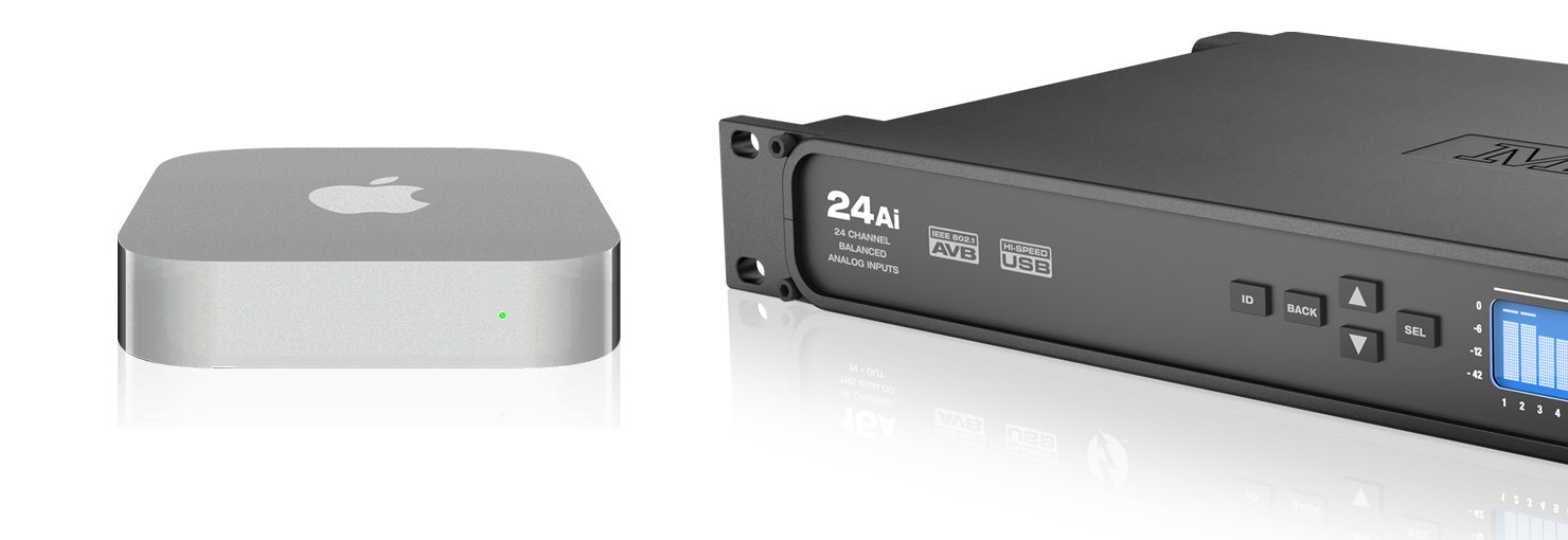 正式にサポートしているのはMac OS X 10.8及び10.9ですが、Mac OS 10.6やMac OS 10.7にUSB接続して、クラスコンプライアントモードで動作する最大24入出力のオーディオインターフェイスとして認識しますので*注2、DAWのオーディオI/Oとしてお使い頂くことができます。そして、更にEthnernetで接続することにより、AVBインターフェイスの操作も行うことが可能です。