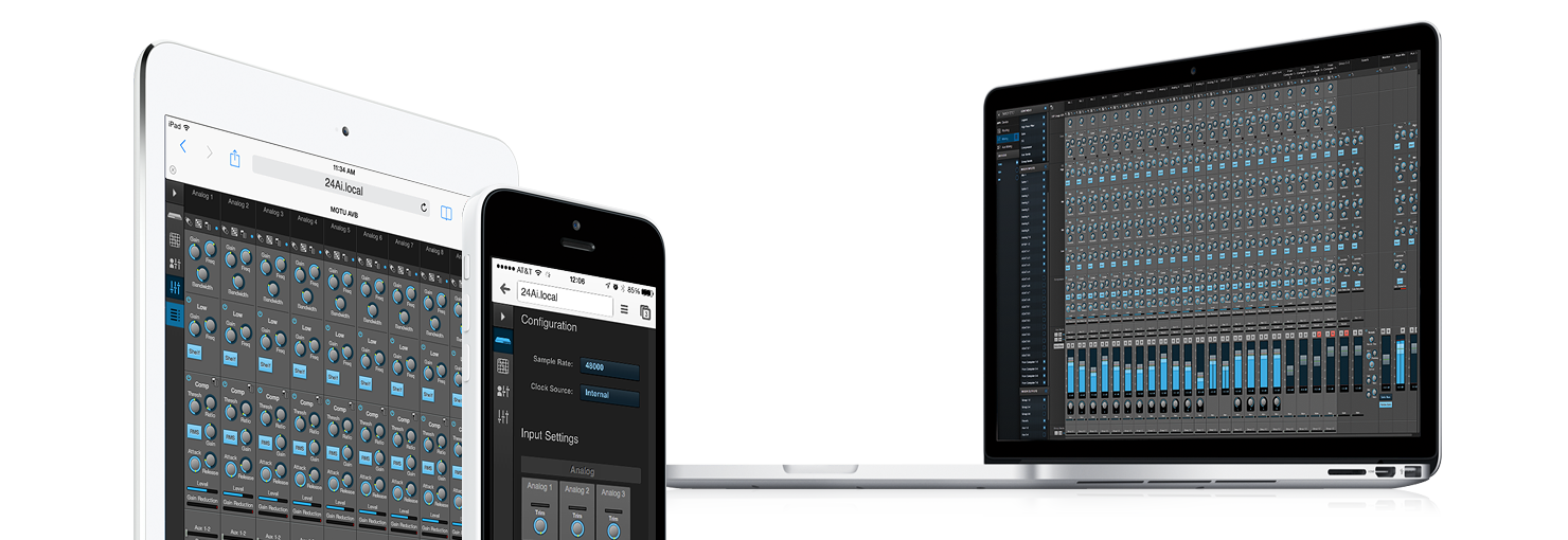 24Aiをコントロールするソフトウェアは、ハードディスク上に存在しません。 24Aiは、ハードウェアと連動するWebアプリケーションでコントロールします。 これは、24Aiの内蔵DSPエフェクトやミキサー、デバイスの各種設定、ルーティングなどを、有線または無線(Wi-Fi)によって接続されたローカル・エリア・ネットワーク内のラップトップ、タブレットあるいはスマートフォン上で、お好きなウェブブラウザを使用してコントロールできることを意味しています。 同じネットワークを共有している限り、任意のプラットフォーム(Mac、Windows、Linux、iOS、アンドロイド)で、任意のウェブブラウザを使用することができます。