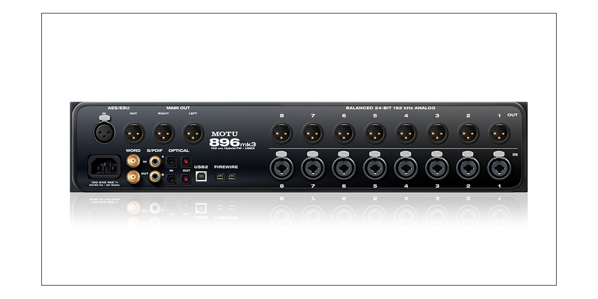 MacintoshFireWireもしくはUSB2端子WindowsFireWireもしくはUSB2端子互換ソフトウエア(Mac OS X)896mk3 Hybridは、Macintosh標準のCore Audio driverと、Core Audio Driverに対応した以下のソフトウエアで動作します。 MOTU Digital Performer MOTU AudioDesk Avid Pro Tools( バージョン9以降) Apple Logic Pro Apple Logic Express Apple Garage Band Apple SoundTrack Pro Ableton Live Propellerhead Record&Reason Steinberg Cubase Native Instruments Kontakt互換性ソフトウェア(Windows)896mk3 Hybridは、Windows 7/ Vista / XPの標準オーディオドライバ及びASIOドライバと、それらに対応した以下のソフトで動作します。 Ableton Live Avid Pro Tools( バージョン9以降) Cakewalk Sonar Steinberg Cubase Propellerhead Record & Reason Image Line FL Studio Sony Vegas Pro Sony Sound Forge Sony Acid Native Instruments Kontakt -