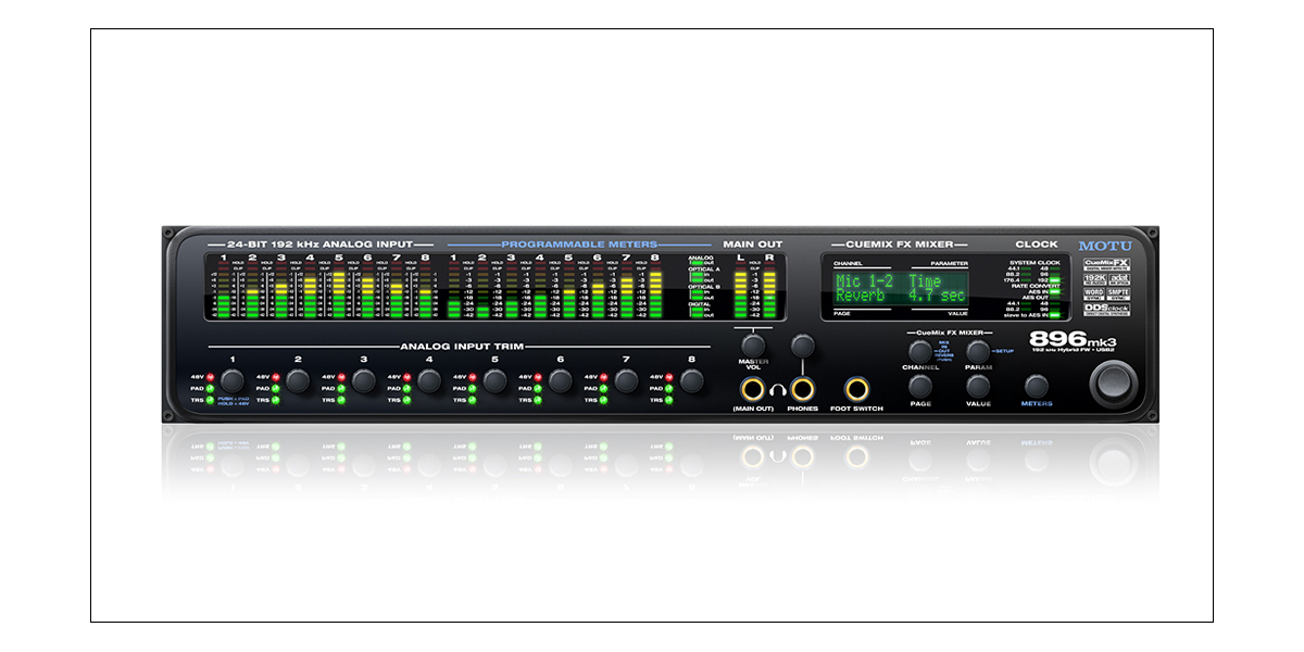 896mk3Hybridは、これまで数々の賞に輝いたMOTUのテクノロジーを元に開発されており、プロフェッショナルクオリティの音質と精度を備えています。