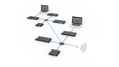 100mにも及ぶケーブル長が長い場所でも、AVB / TSNスイッチとネットワークケーブルを使用して、複数のインターフェイスとコンピュータを用いたオーディオネットワークを構築し、システム設営の大幅な短縮が見込めます。同時にネットワーク上のデバイスやコンピュータ間で数百にも及ぶオーディオチャネルをストリームします。