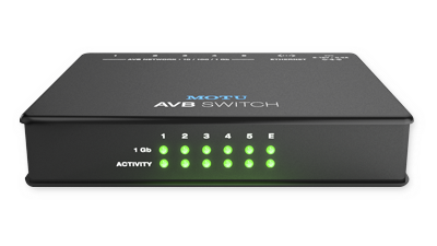 MOTU AVB / TSNスイッチ(別売)を使用することで最大5つのMOTU AVBインターフェイスを接続いただけます。