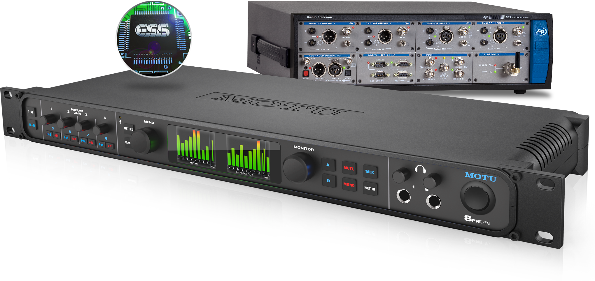 ESS Sabre32 Ultra™ DACテクノロジー採用によって、123dBのダイナミックレンジの実現と、MOTUオーディオインターフェイスのフラッグシップである1248と同等の、数々のアワードを受賞したオーディオクオリティが提供されます。