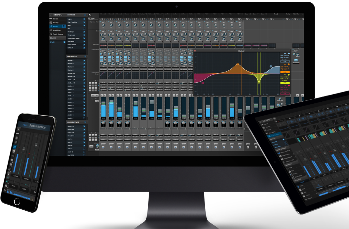 ノートパソコン、タブレット、スマートフォンからMOTUインターフェイスを制御