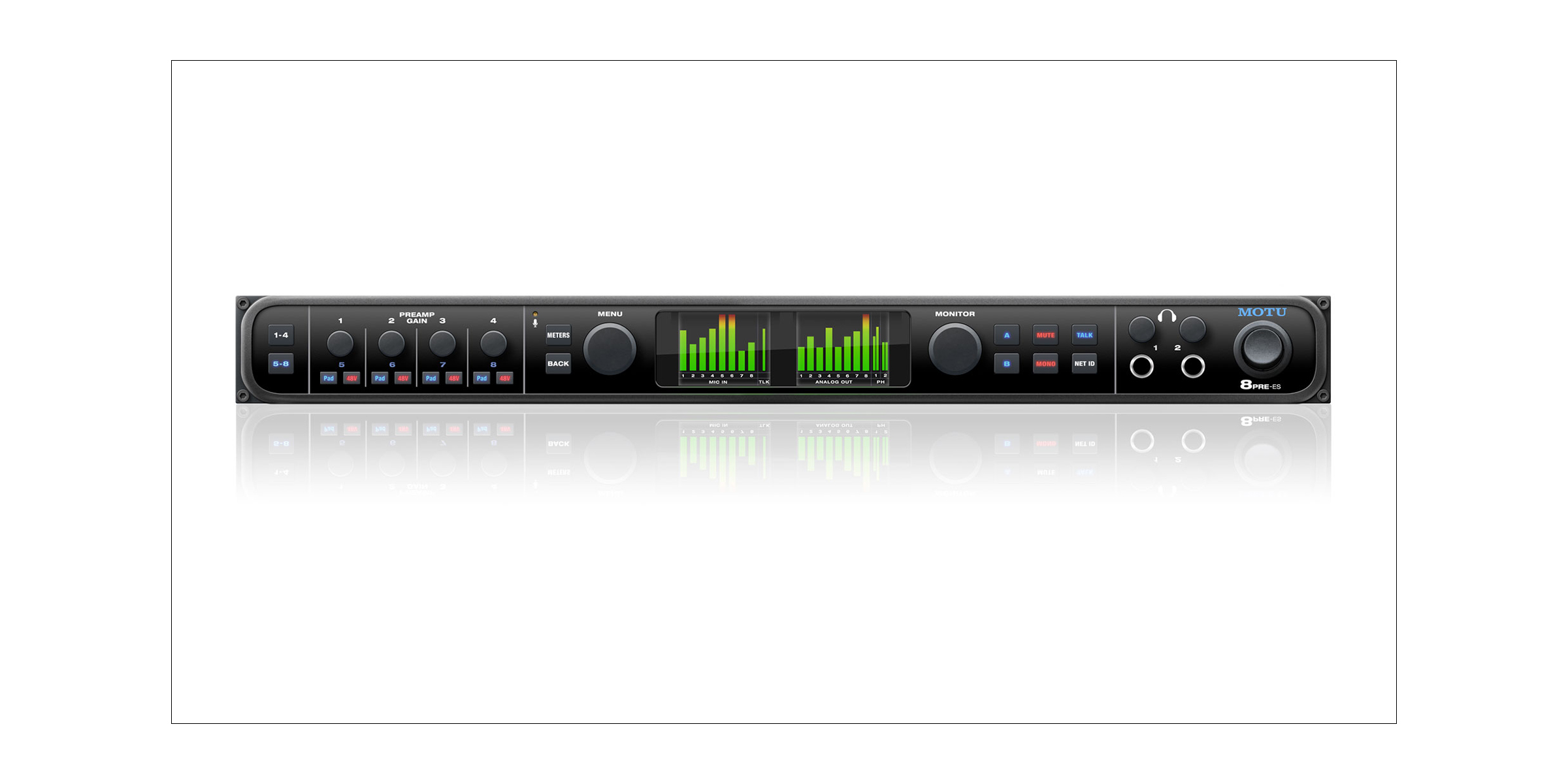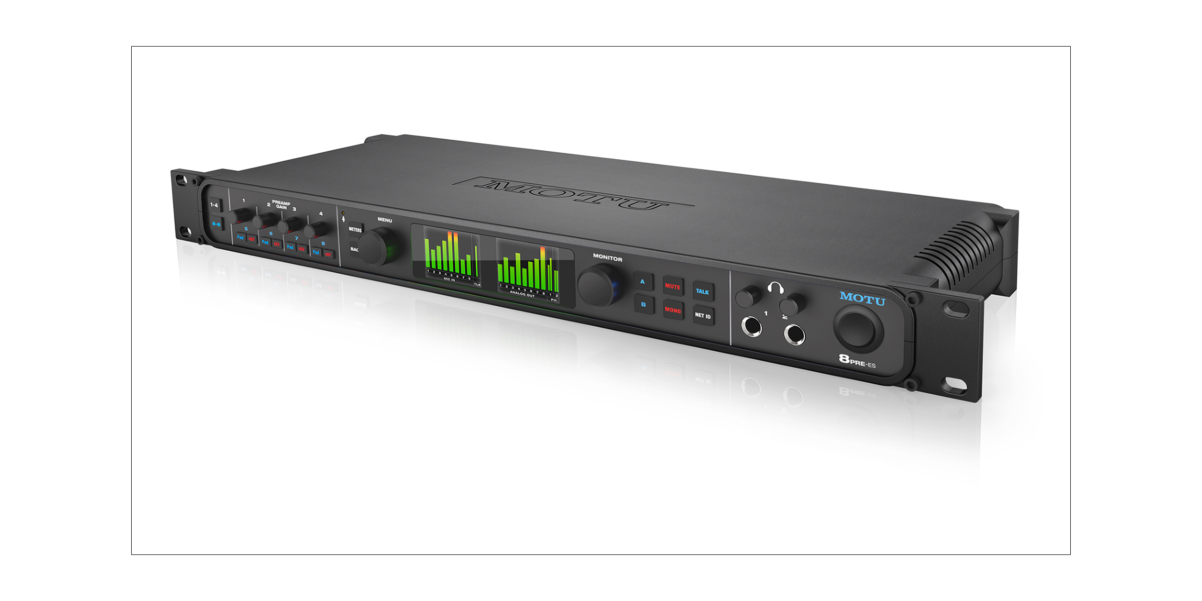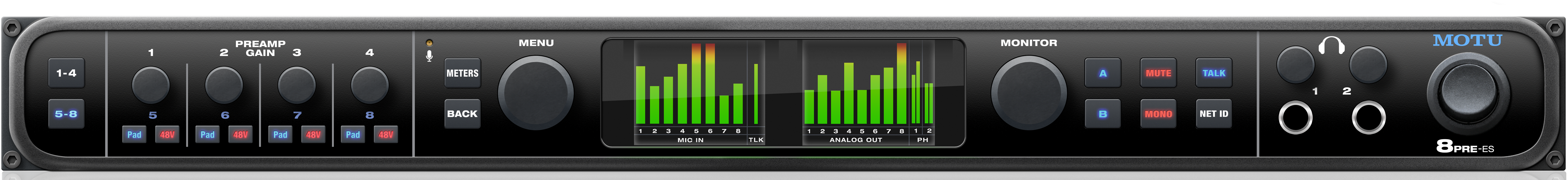 他のMOTUインターフェイスと同様、8PRE-ESに採用されている軽量化されたアルミニウム合金シャーシは、耐久性を担保し、スタジオ、ステージ、ツアーバスなどのハードな環境にも耐えるように設計されています。