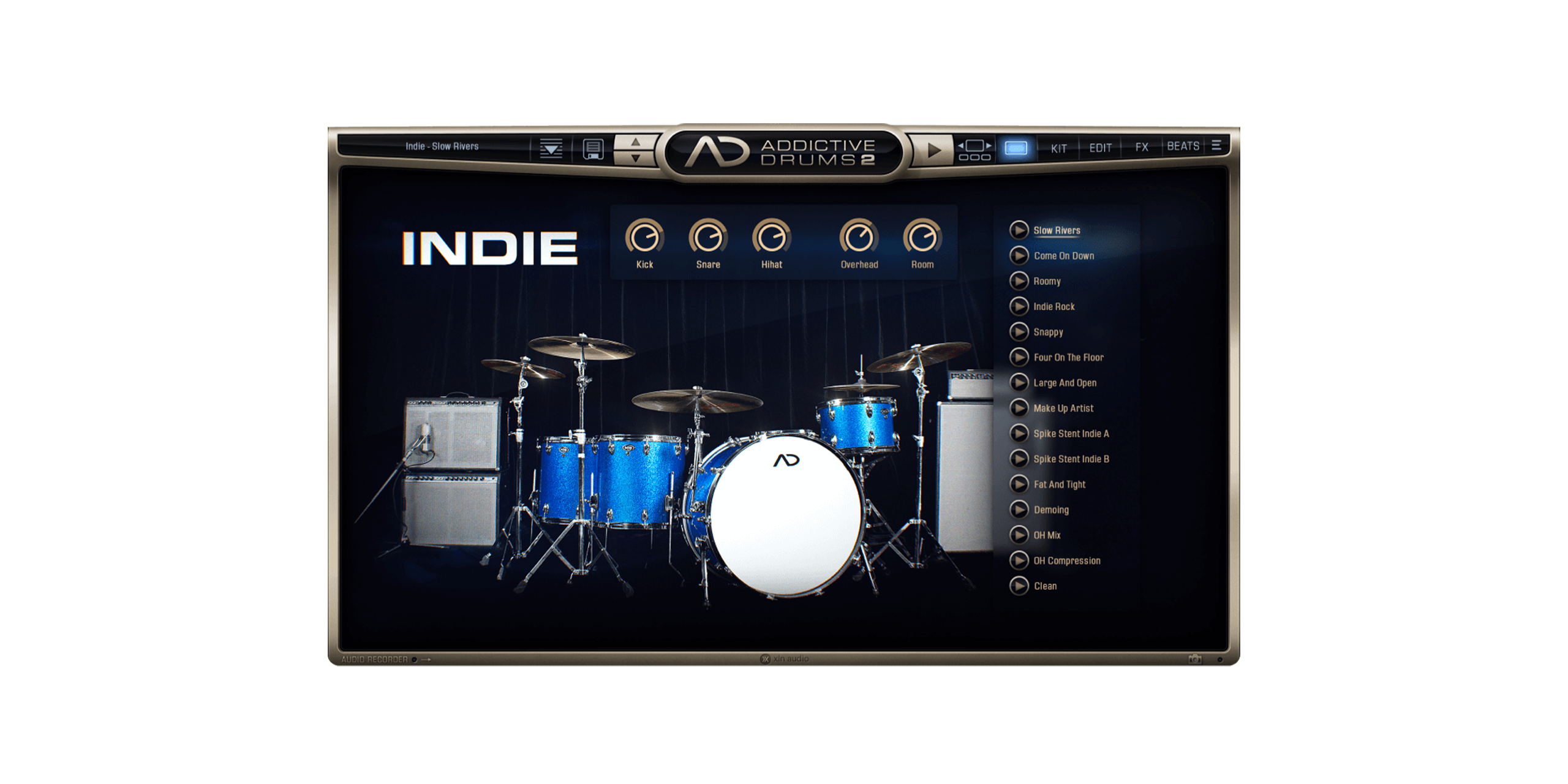 INDIEは、往年のヒットチューンと同じ手法であるアナログテープレコーダーとヴィンテージコンソールを通したサウンドを再現したアコースティックドラム音源です。暖かくパンチの効いたドラムサウンド実現しました。