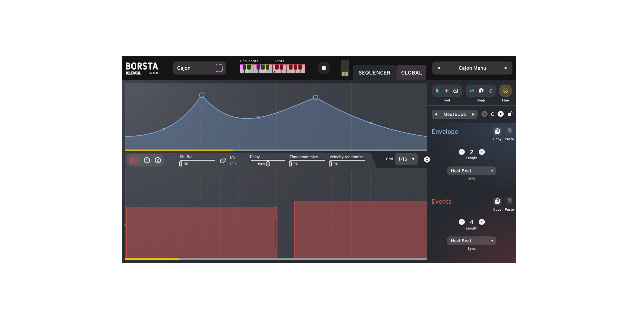 パラレルエンベロープやイベントシーケンサーを使用すると、ストロークを開始するタイミング、ストロークのプレッシャー/スピードが時間の経過とともにどのように変化するか、あるいはストロークを終了するタイミングを正確に決定できます。さらに、各機器は、高度なチョーク機能を備えたマルチサンプルのワンショットも提供します。