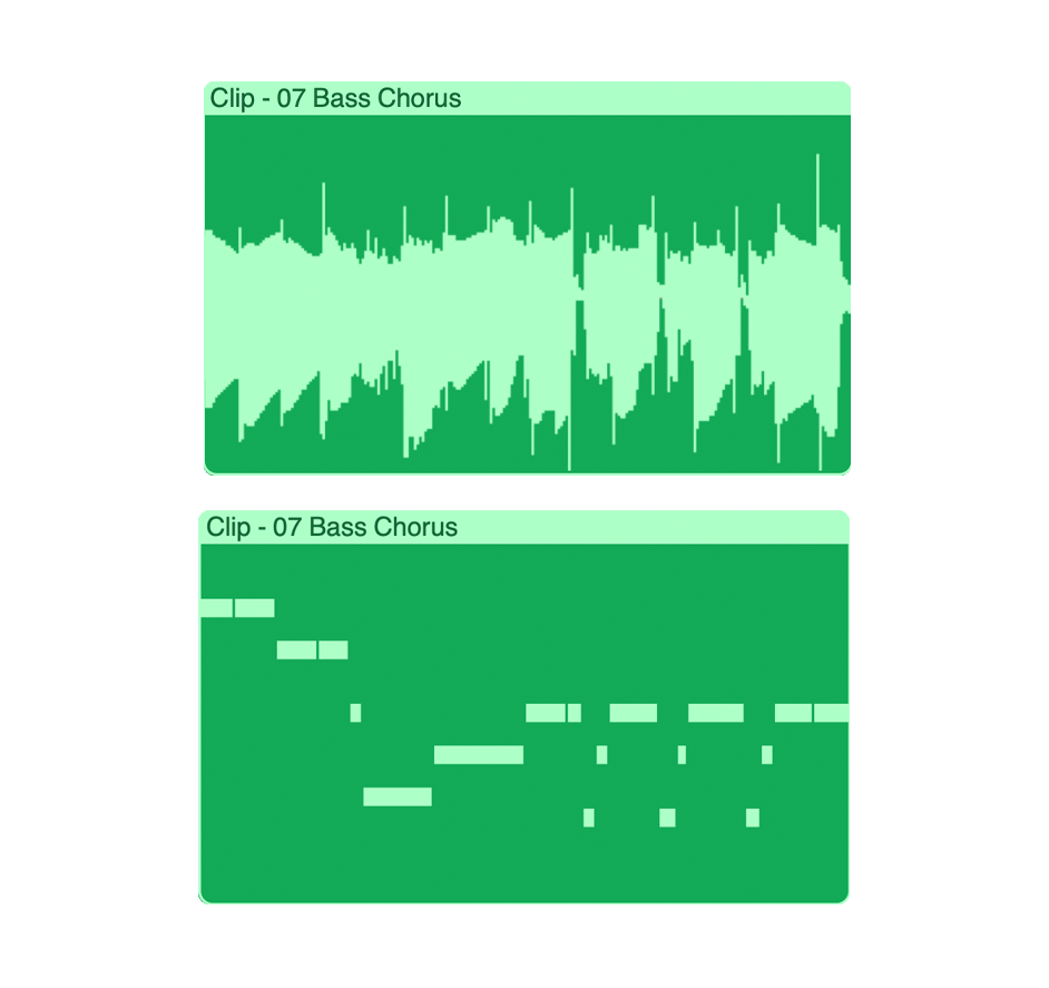 数十にも及ぶノートやコントローラーのデータに代わり、簡潔で直感的な編集のため、それぞれが独自のノート固有のコントローラーを含む通常のMIDIノートのように表示されます。