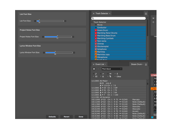 UIのスケーリングに関係なく、DPのリストウィンドウでテキストのサイズを変更できるようになりました。リスト、プロジェクトノート、歌詞の3つの新しいフォントサイズ設定を制御することが可能になりました。