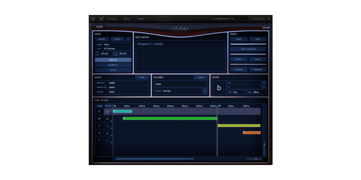 最新の改良されたWordBuilderプラグインにより、ユーザーはどんな言語の、どんな言葉でもタイプすることが可能で、フルの合唱もしくは、個別に男声あるいは女声セクションに歌唱させることが可能となります。