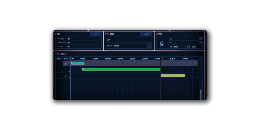 母音、ピッチのある子音、ピッチのない子音には、音素間の相対的なバランスを調整できるボリュームスライダーがあります。