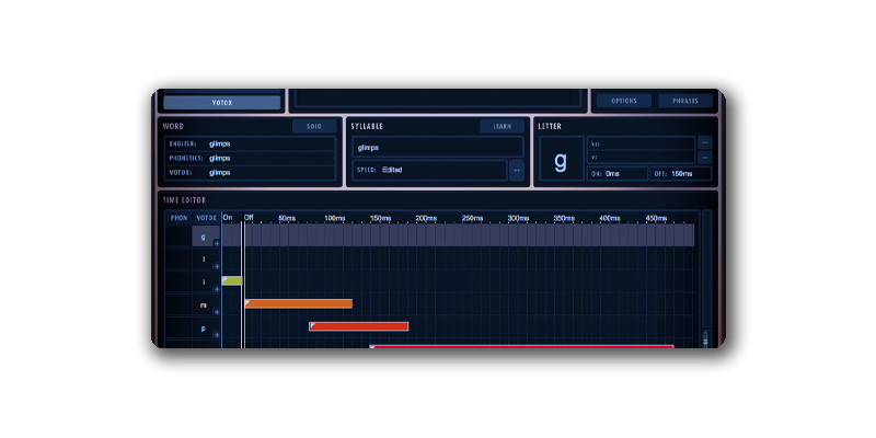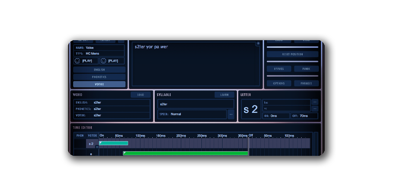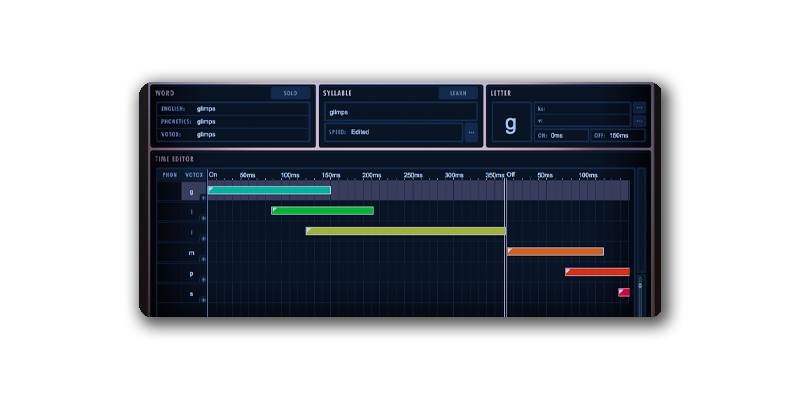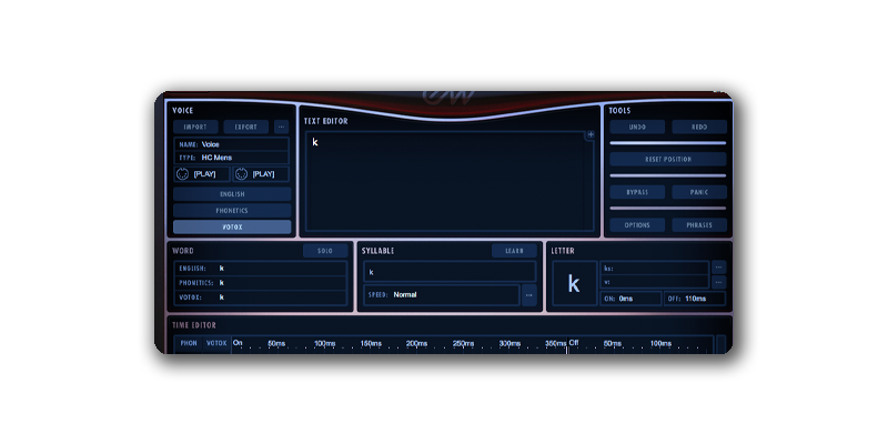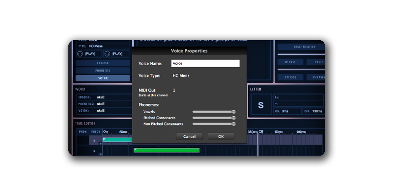 ”音程の無い子音”は、理解しやすい単語を作成するために非常に重要です。異なるタイプのサンプルを繰り返し発音する「ラウンドロビン」機能は、結果が矛盾することがよくありますが、ユーザーはナンバリングシステムを使用し て、すべての音程のない子音の特定の代替テイクを定義できます。たとえば、単語の先頭の最初の「S」が単語の後半で繰り返し聞こえない場合は、より良く聞こえる代替テイクが見つかるまで「S2」、「S3」、または「S4」を試すことができます。