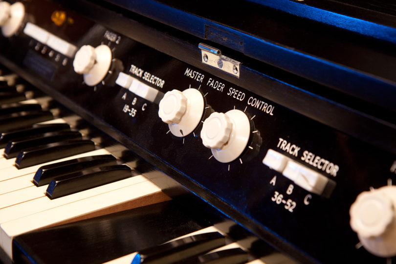 かつてのオリジナルMkIIの各鍵盤の下には、大きな磁気テープが存在していました。ボタンを押すと、スクロールメカニズムによってテープが移動し、6つの各セクションのうち1つを再生できるようになっています。このセクションは「ステーション」と呼ばれ、それぞれが特定のスタイル、調、テンポに準拠しています。ただしオリジナルモデルでは、異なるステーションからのリズムや伴奏をミックスして一致させることは不可能でした。