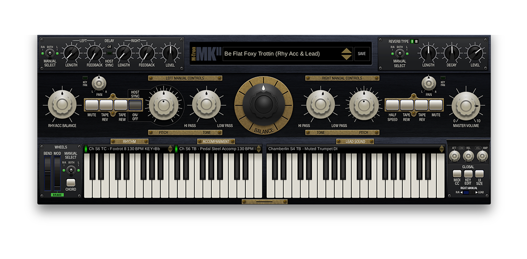 さらに、M-Tron MkIIは、ChamberlinとMelly MkI&IIの2つのリズムと伴奏を重ねて、ハイブリッドなリズムとモチーフを融合するデュアルリズムモードを備えています。また、オリジナルテープの特徴を損なうことがないように注意が払われています。