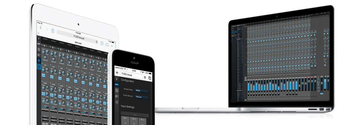 112Dをコントロールするソフトウェアは、ハードディスク上に存在しません。 112Dは、ハードウェアと連動するWebアプリケーションでコントロールします。 これは、112Dの内蔵DSPエフェクトやミキサー、デバイスの各種設定、ルーティングなどを、有線または無線(Wi-Fi)によって接続されたローカル・エリア・ネットワーク内のラップトップ、タブレットあるいはスマートフォン上で、お好きなウェブブラウザを使用してコントロールできることを意味しています。 同じネットワークを共有している限り、任意のプラットフォーム(Mac、Windows、Linux、iOS、アンドロイド)で、任意のウェブブラウザを使用することができます。