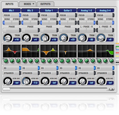 アナログトリムをデジタル制御により、デジタル変換前の信号を1dB精度で設定し、確かなデジタル変換と設定のトータルリコールを実現 - CueMix FX コントロールソフトウェア