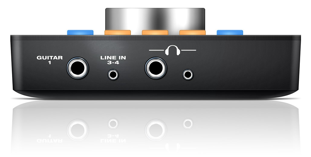2つのマイク入力は、48Vファンタム電源、-20dBパッドなどの設定を個別におこなえるマイクプリアンプを装備。完全独立のマイクプリアンプはPrecision Digital Trimによる正確な音量設定とワイドゲインレンジを確保 - 2つのギター入力