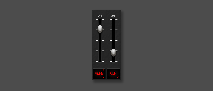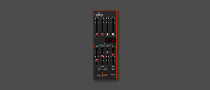 さまざまなルーティング・オプションを備えた 2 つのエンベロープ、ADSR と AR。 高い演奏性に対応するキーボード・ベロシティ・デスティネーション。