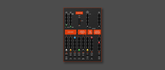 OSC1、OSC2セクションは、ホワイトノイズ、ピンクノイズ・ジェネレーターなどオリジナルを忠実に再現しています。さらにサブ・オシレーターを追加し、デュアルVCOを損なうことなく、重低音域をフォローアップしています。