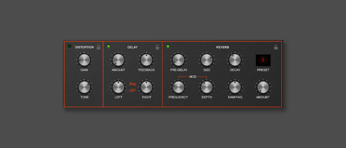 ディストーション & マトリックス・リバーブ・エフェクト、アップデートされたディレイを含む新しいFXセクション。