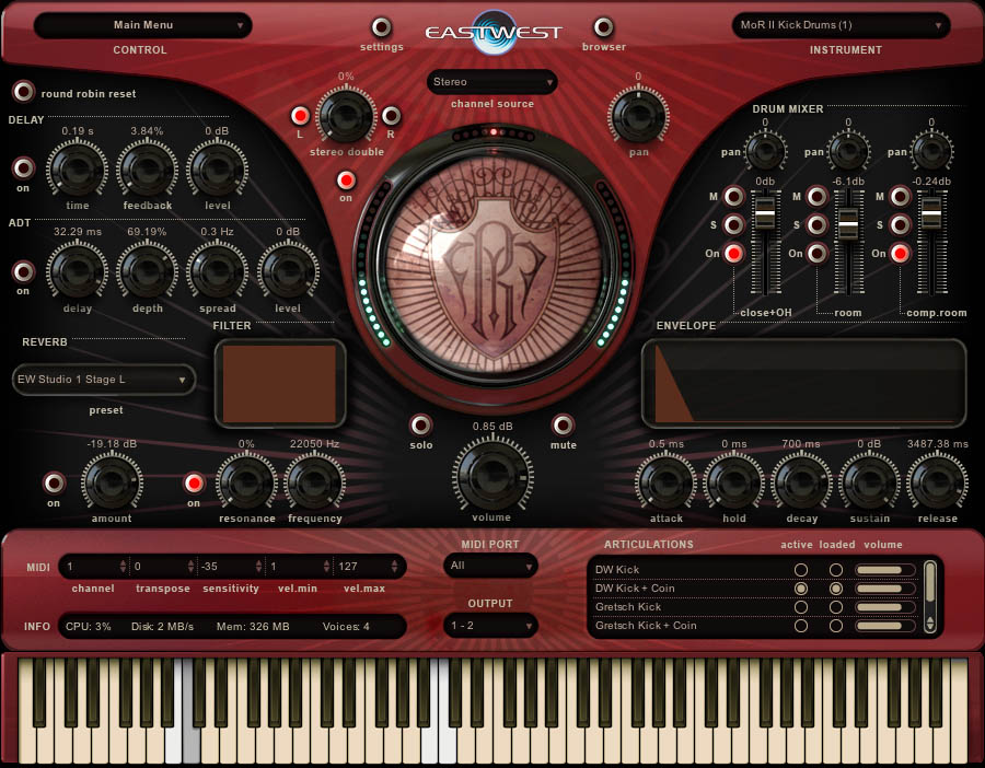 ロード済みの各音色は異なるMIDIポートやMIDIチャンネル、オーディオアウトプットに自由に組み合わせ可能なため、お好みのセットアップを構築していただけます。