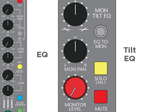 それに加えて、すべてのモニター入力には独自のTilt EQがあります。これによりチャンネルごとに2つの別々の入力が設けられており、どちらにも多用途のEQを備えているのです。