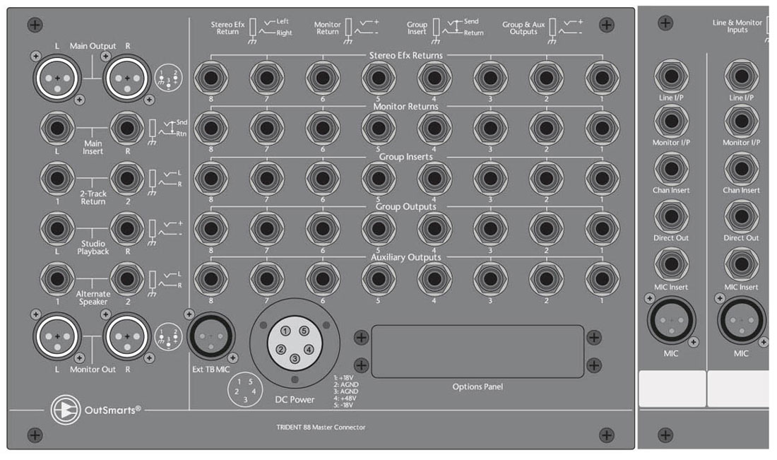 伝統的なTridentデスクのルーティングとフィーリングと共に、現代における機能性、ワークフロー、パフォーマンスの観点でアップデートがなされています。例えば、500フォーマットのようなアウトボードプロセッサーやマイクプリとの統合は、専用の切り替え可能な入力によって簡単かつエレガントに提供されます。これにより、チャンネルプリアンプ回路をバイパスし、外部信号ソースをチャンネルイコライザーにダイレクトに挿入することもできます。