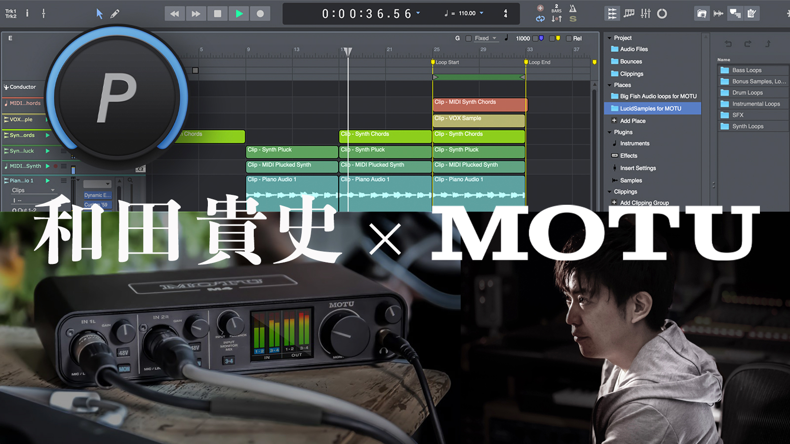 Performer Liteで同楽曲の録音、編集の工程も和田貴史さんのYouTubeチャンネルにて公開いただいており、MOTUインターフェイスとPerformer Liteを用いた実際のワークフローもご覧いただけます。