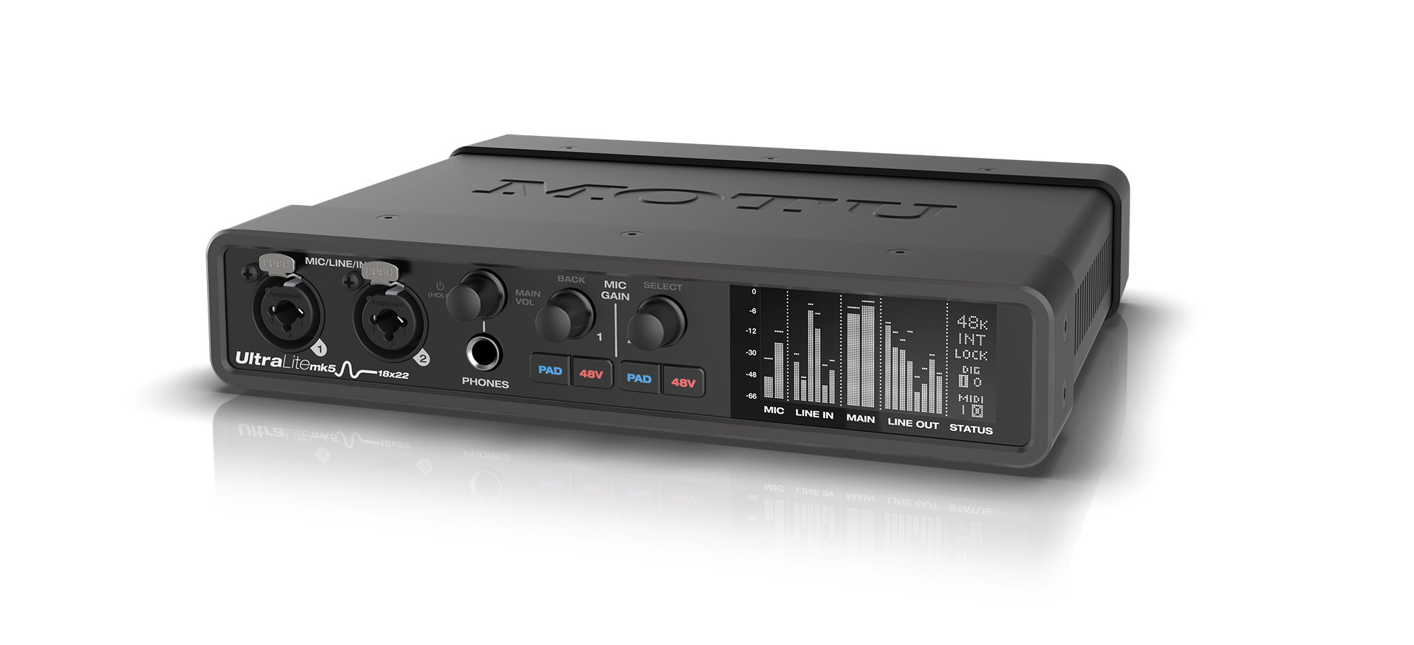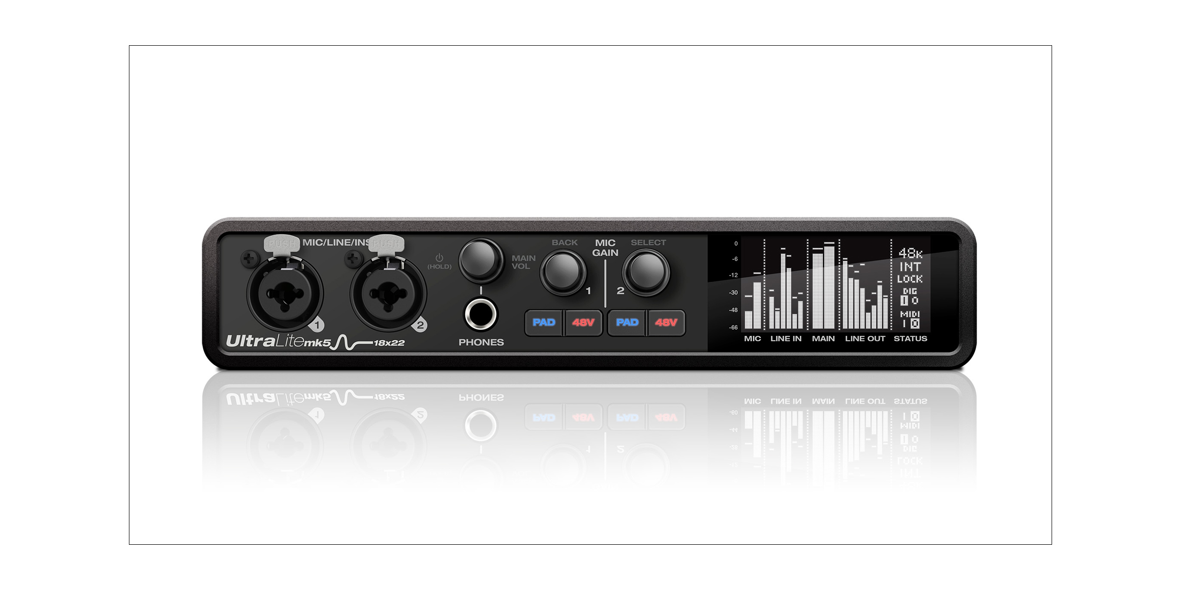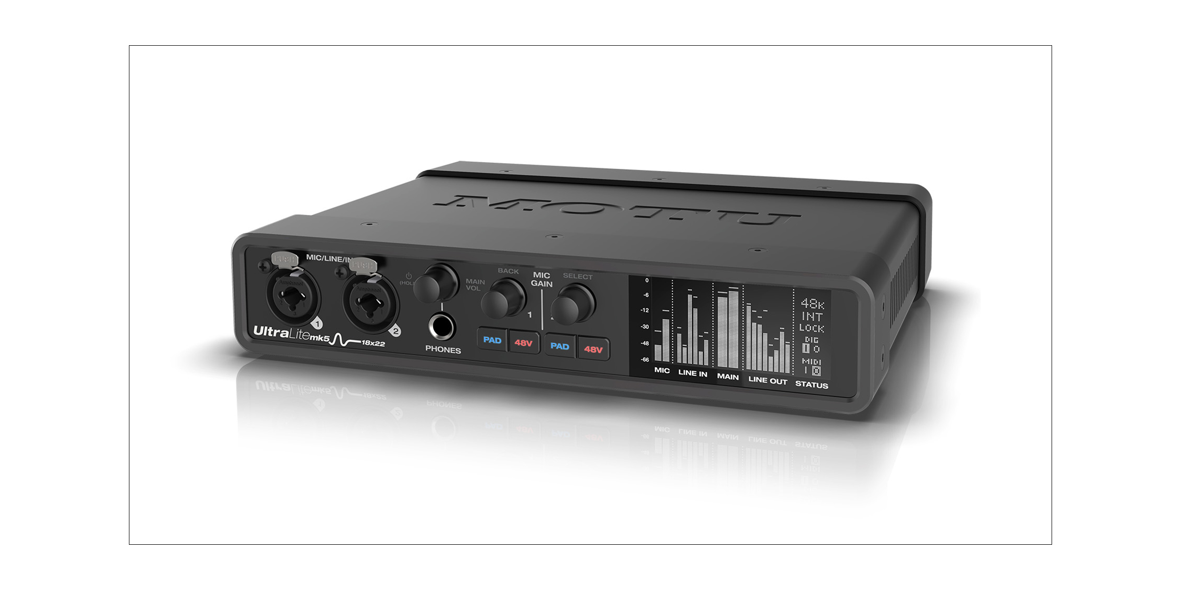 UltraLite-mk5は、どこにでも持ち運べるコンパクトなスチール製の筐体に収められており、コンピューターの有無にかかわらず、スタジオやステージで活躍します。