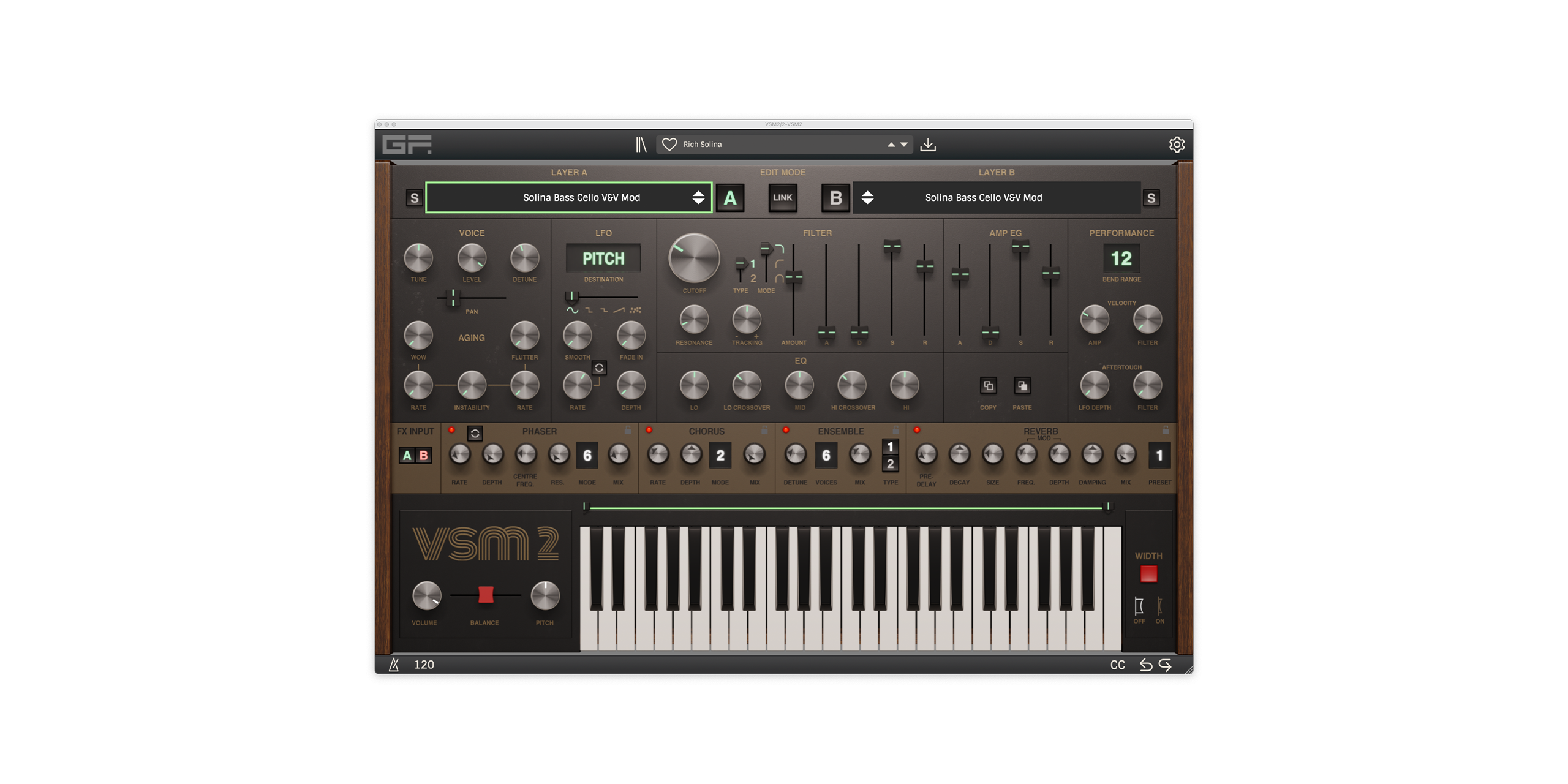 VSMに収録されている楽器数は膨大なボリュームに及び、黄金時代のストリングス・マシンのトーンを簡単に再現します。しかし、VSMの包括的かつ直感的な機能セットに加え、2レイヤー・オプションを使用することで、独自のハイブリッド・パッチを作成することも可能になり、崇高なヴィンテージ・トーンを未知の領域へと導きます。
