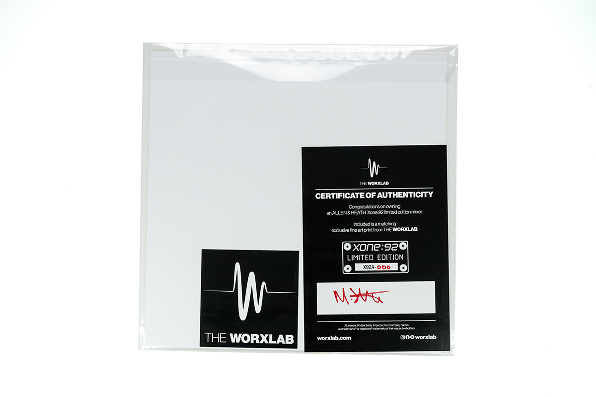 限定モデルの付属品として、Worxlabによるユニークな12インチのファインアート・プリントと、ミキサーのシリアルナンバーが刻印されたお揃いの「ドッグタグ」キーフォブが同梱されており、Xone:92 Limited Editionはアナログ愛好家やヴァイナルDJにとって究極のコレクターズ・アイテムとなる内容を実現しています。