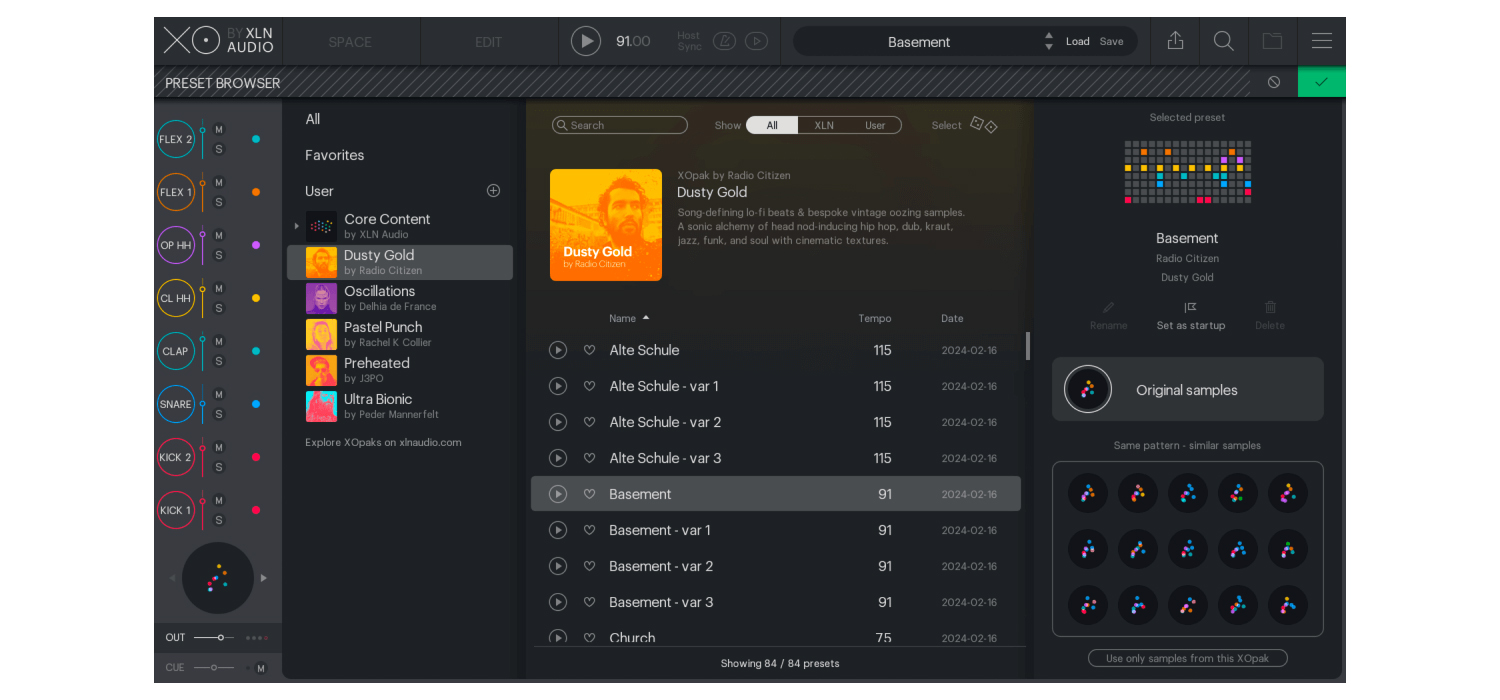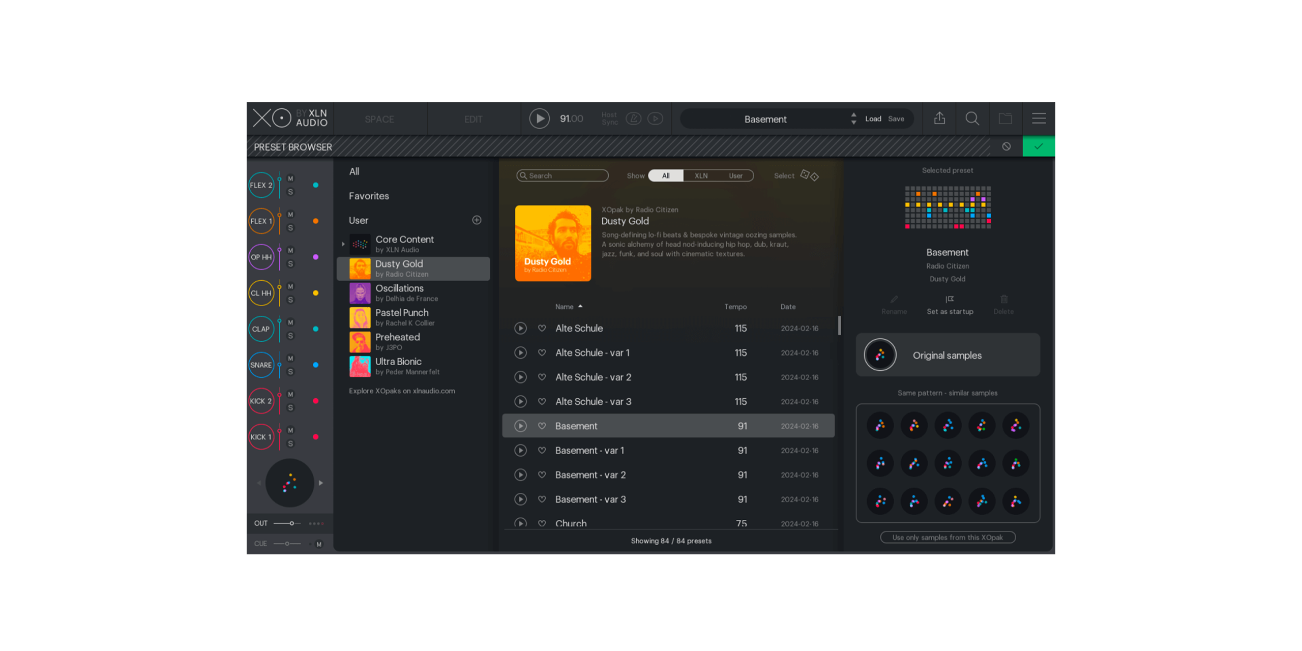 Radio Citizenのクリエイティブ・マスター、Niko SchabelによるXOpak、”Dusty Gold “の豊かな質感の音世界に飛び込もう。このXOpakには、トラックを定義する、ヴィンテージ機材からにじみ出るローファイ・ビートと、ミックス可能な頭を振りたくなるユニークなXOシーケンスを満載したループが収録されています。